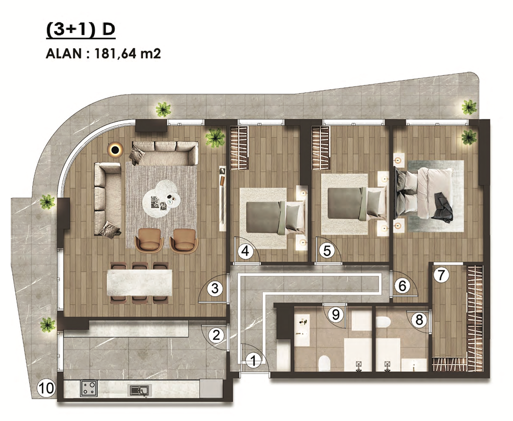 This residential development offers a fully integrated living experience with 227 apartments ranging from 1+1 to 4+1, within two blocks. Open views blending blue and green elements come together in a contemporary architectural harmony.